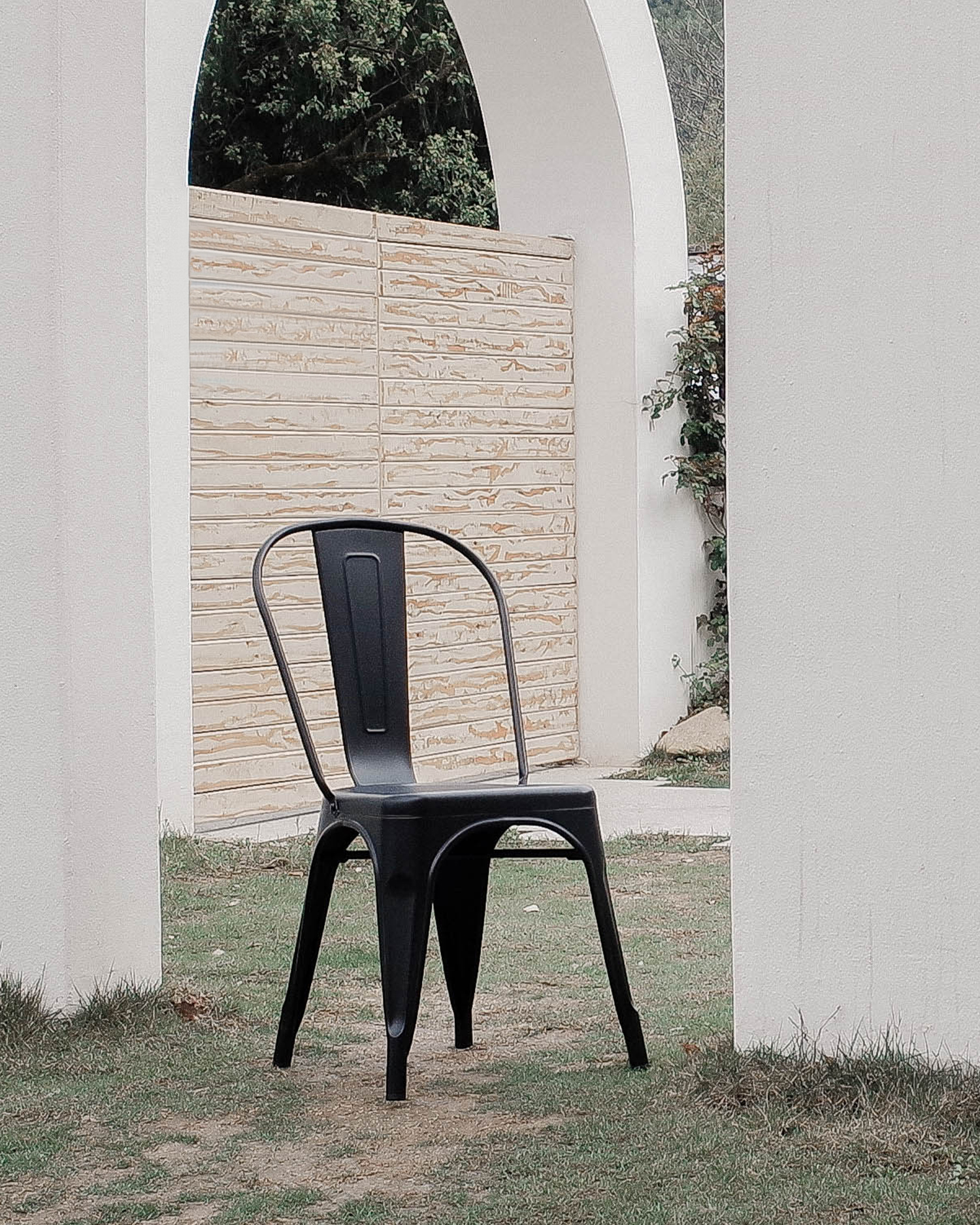 • Kursi ini adalah perayaan desain industri, menampilkan bingkai besi hitam yang kokoh yang berbicara banyak tentang daya tahan dan kekuatannya. Kursi berlubang tidak hanya menambahkan daya tarik visual yang khas tetapi juga memastikan kemampuan bernapas, membuatnya nyaman untuk penggunaan yang lama.