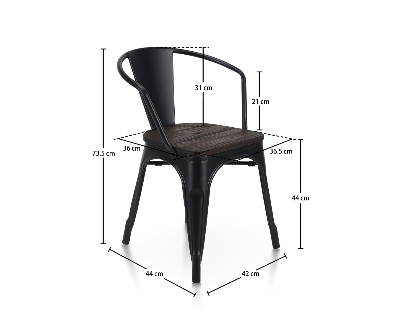 • Sandaran tangannya berbentuk ergonomis untuk memberikan dukungan yang optimal, sementara sandaran menawarkan lean yang nyaman. Kursi kayu Elm menambahkan daya tarik visual yang khas. Dimensi kompak kursi dan struktur ringan membuatnya mudah untuk bermanuver dan menumpuk, menawarkan kepraktisan tanpa berkompromi pada gaya.
