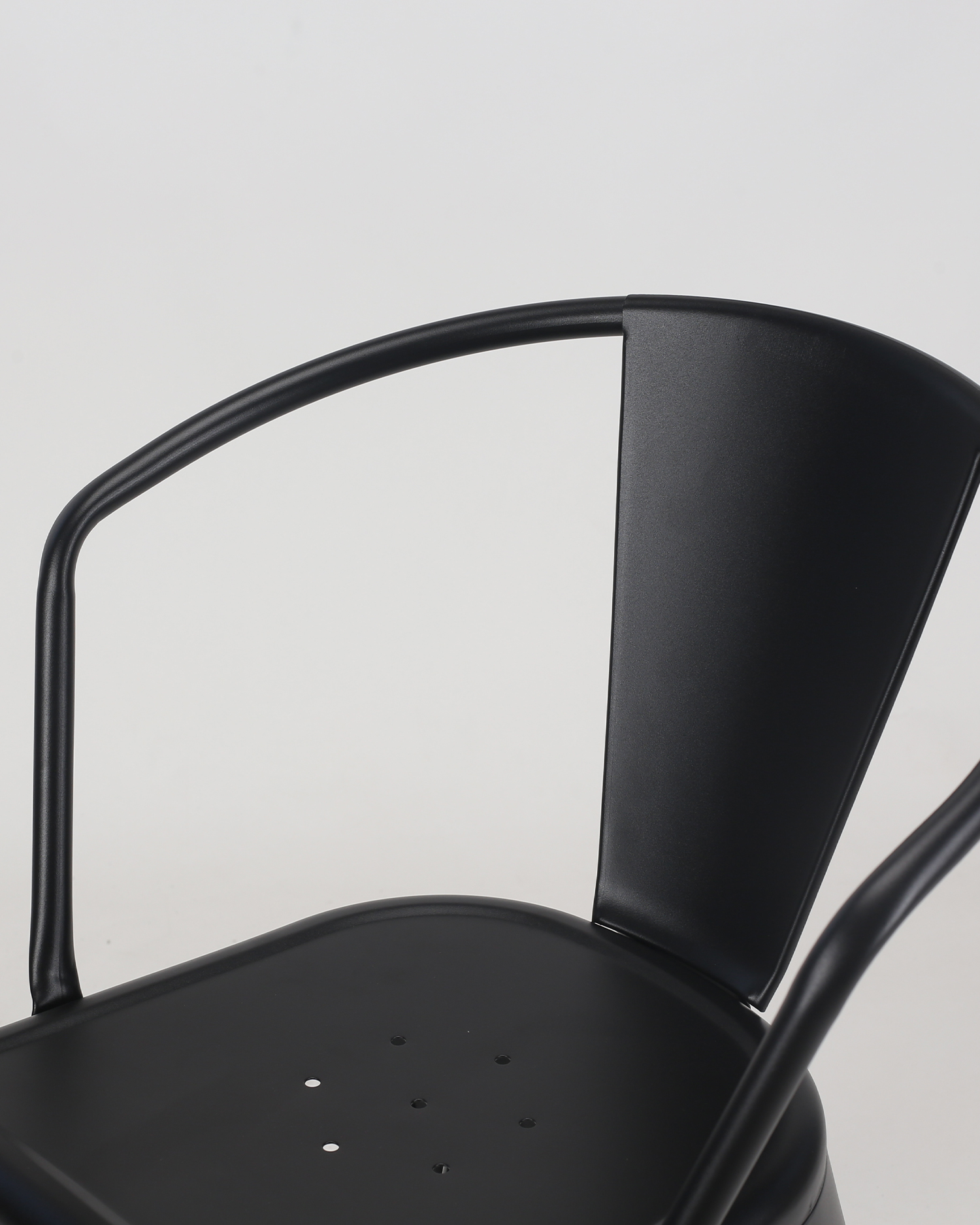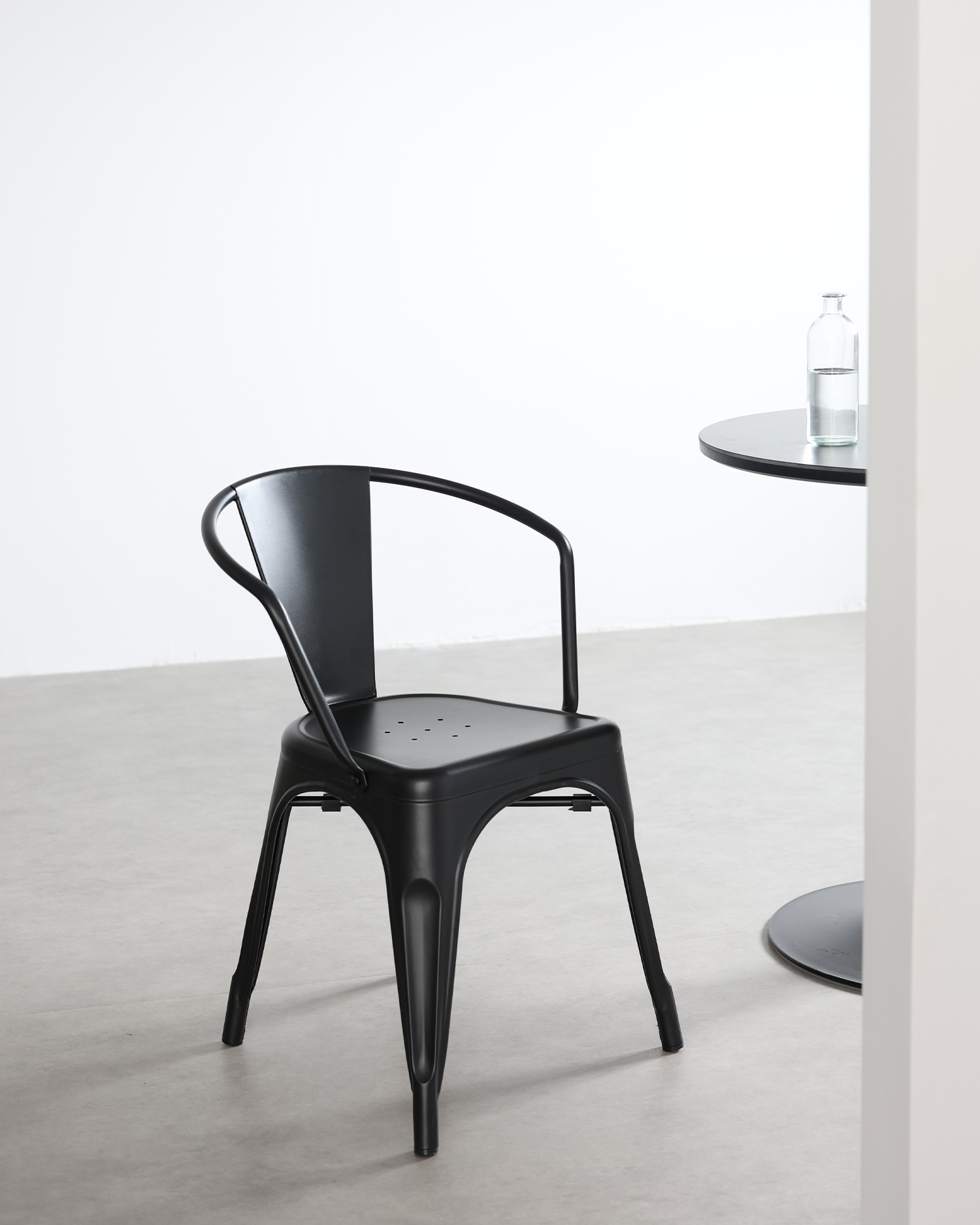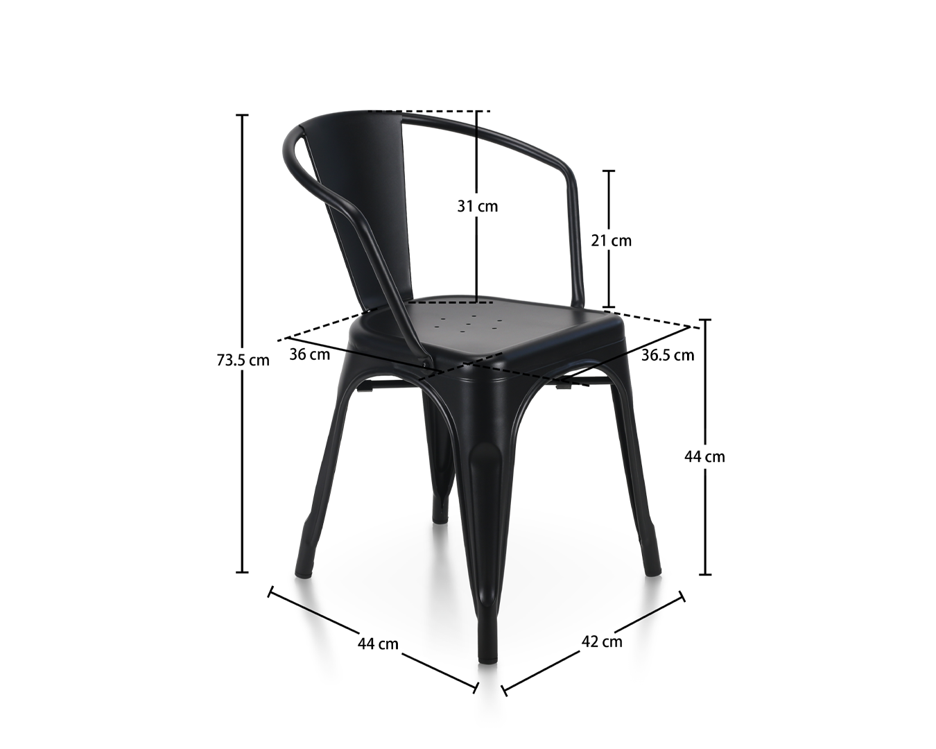 • Kursi ini adalah karya desain industri, dibuat dari besi berkualitas tinggi dan selesai dengan warna hitam ramping yang memancarkan keanggunan. Perhatian terhadap detail dalam konstruksinya terbukti dalam setiap aspek, dari pengelasan yang tepat hingga kontur bingkai yang halus.