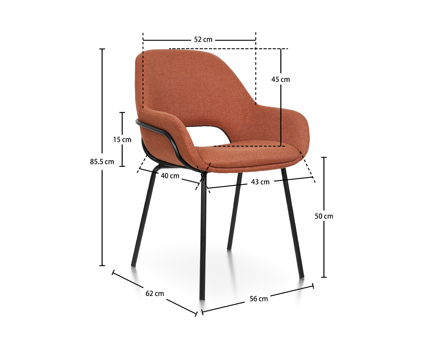 • Dengan dasar logam yang mencolok dan perpaduan kain lembut yang indah, kursi ini menawarkan bakat penuh gaya sambil memberikan kenyamanan optimal untuk makan malam yang panjang dan santai. Desain ergonomis dan ketinggian kursi 50cm membuat pengalaman bersantap yang ideal, sedangkan bingkai yang kokoh memastikan daya tahan yang langgeng.