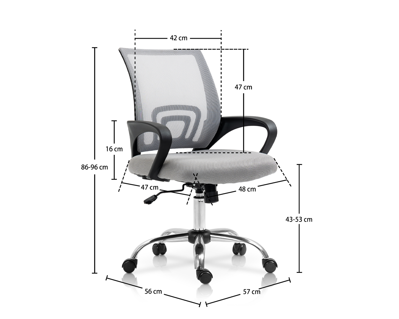 -Ukuran: W57*D56*H86-96 CM / SH: 43-53 cm