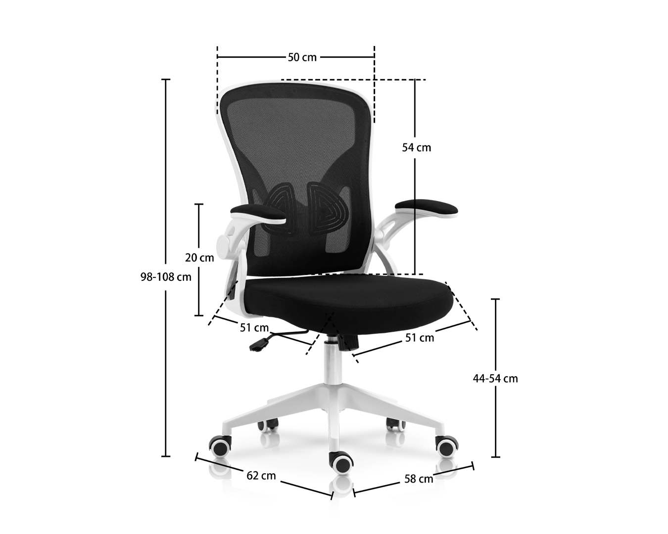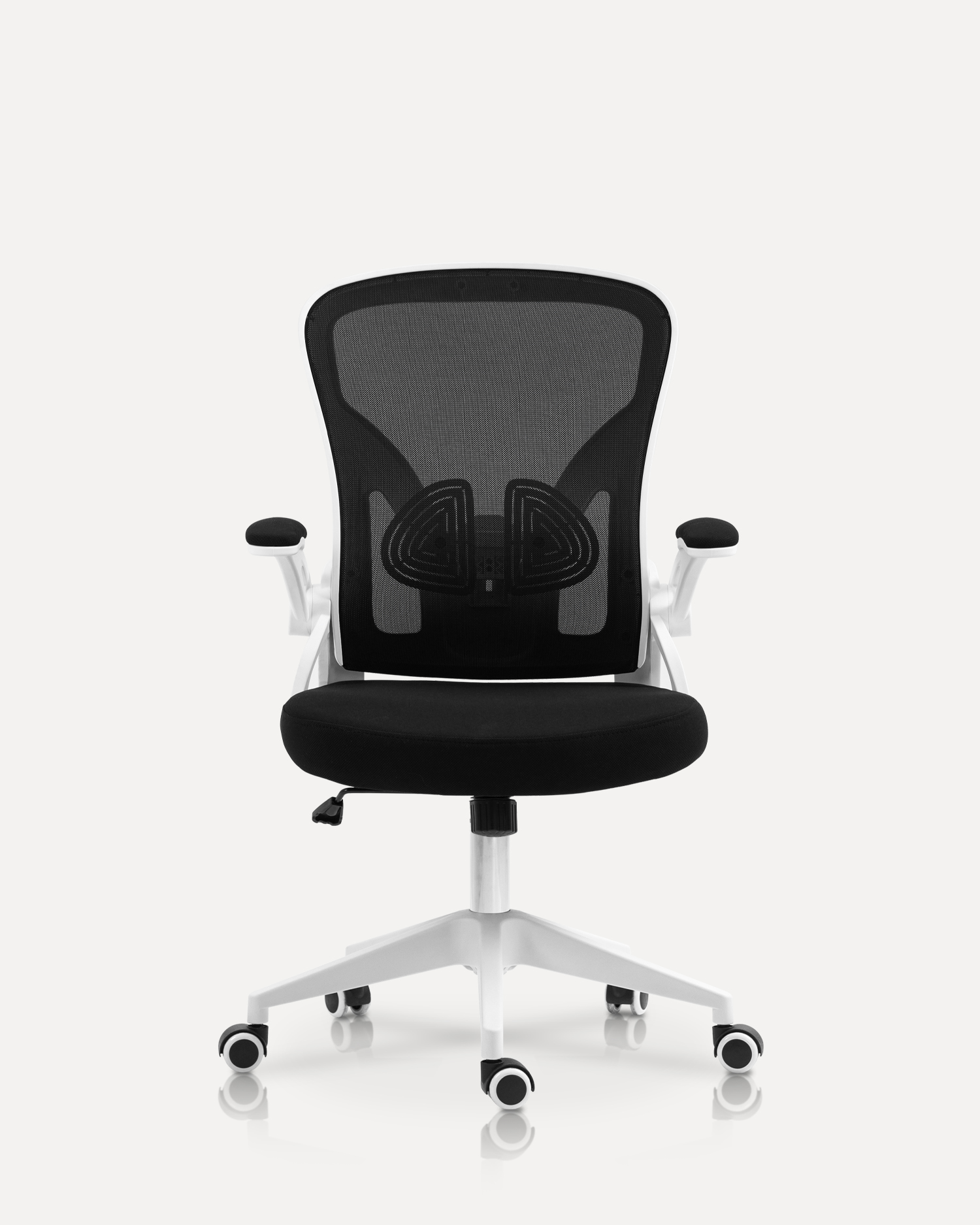 • Fitur desain yang ramping dan kontemporer dengan sandaran dan kursi hitam, dilengkapi dengan sandaran tangan putih dan alas beroda lima poin. Bahan mesh tidak hanya menambah penampilan gaya kursi tetapi juga memberikan napas yang sangat baik, memastikan Anda tetap dingin dan nyaman sepanjang hari.
