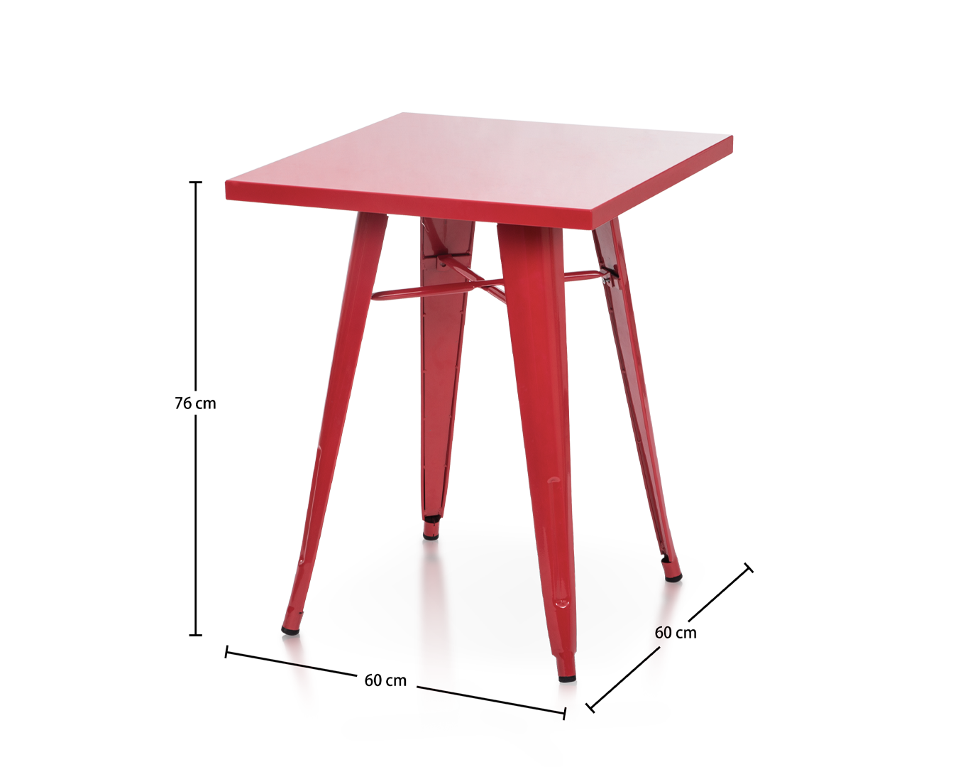 • Hasil akhir merah yang semarak memberikan penampilan yang hidup dan mengundang, menjadikannya pilihan yang sangat baik bagi mereka yang ingin menambahkan percikan warna ke rumah mereka. Konstruksi meja yang kokoh, dengan empat kaki miring dan batang horizontal yang menghubungkan, memastikan tetap stabil dan aman bahkan saat digunakan.