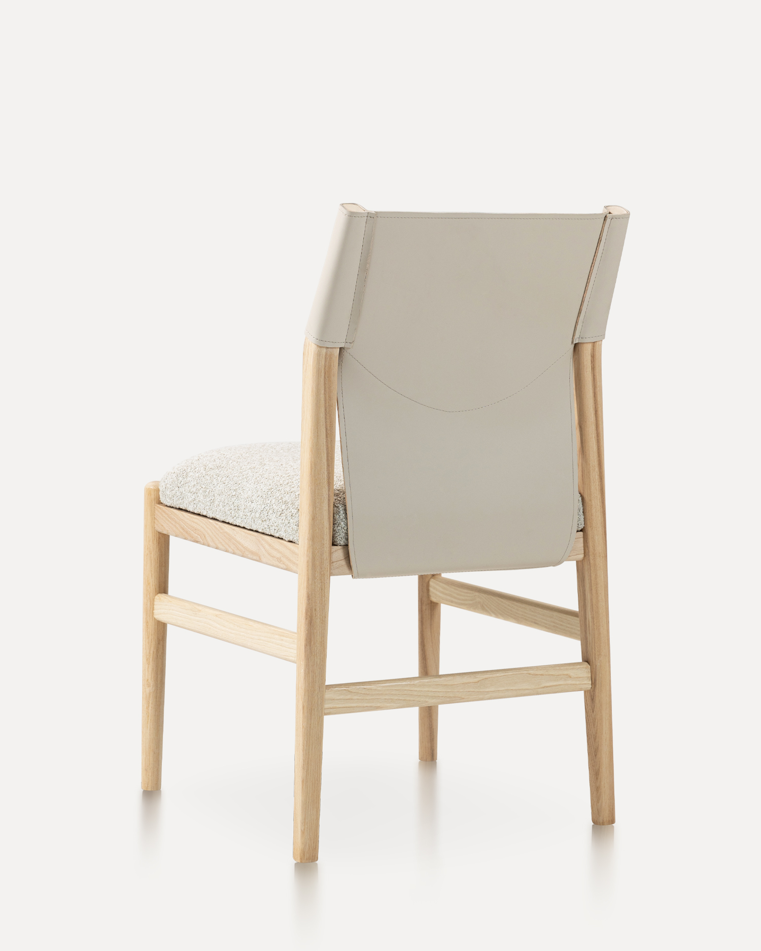 • Bingkai dibuat dari kayu abu berkualitas tinggi, menampilkan keindahan alami dan daya tahan material, dengan sentuhan akhir yang halus dan pola biji-bijian halus menambah kehangatan pada ruang interior apa pun. Saddle Leather Backrest memberikan sentuhan mewah, menawarkan gaya dan dukungan. Teksturnya yang lentur dan warna yang kaya melengkapi desain keseluruhan kursi, menjadikannya pilihan yang ideal bagi mereka yang menghargai keahlian yang bagus.