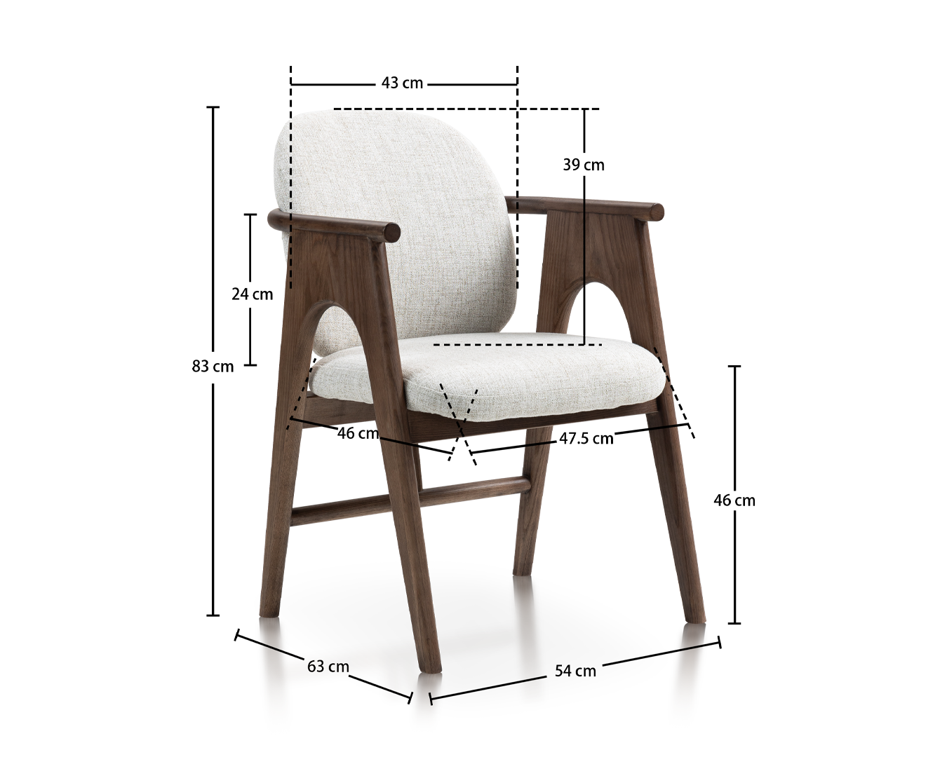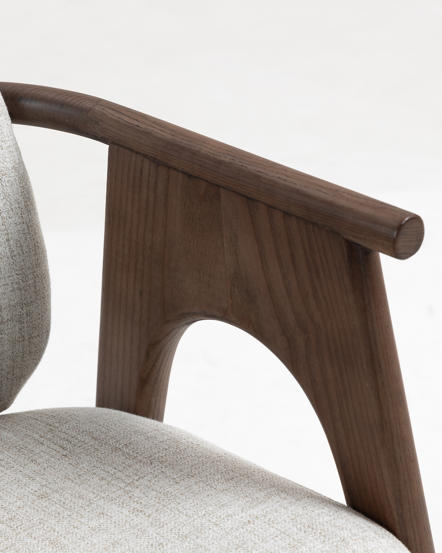 • Dibuat dari kayu abu berkualitas tinggi, kursi ini menampilkan hasil akhir yang kaya dan hangat yang menonjolkan keindahan alami material. Sandaran tangan melengkung yang unik menambah gaya dan fungsionalitas, memungkinkan Anda untuk duduk dan bersantai dalam kenyamanan tertinggi.