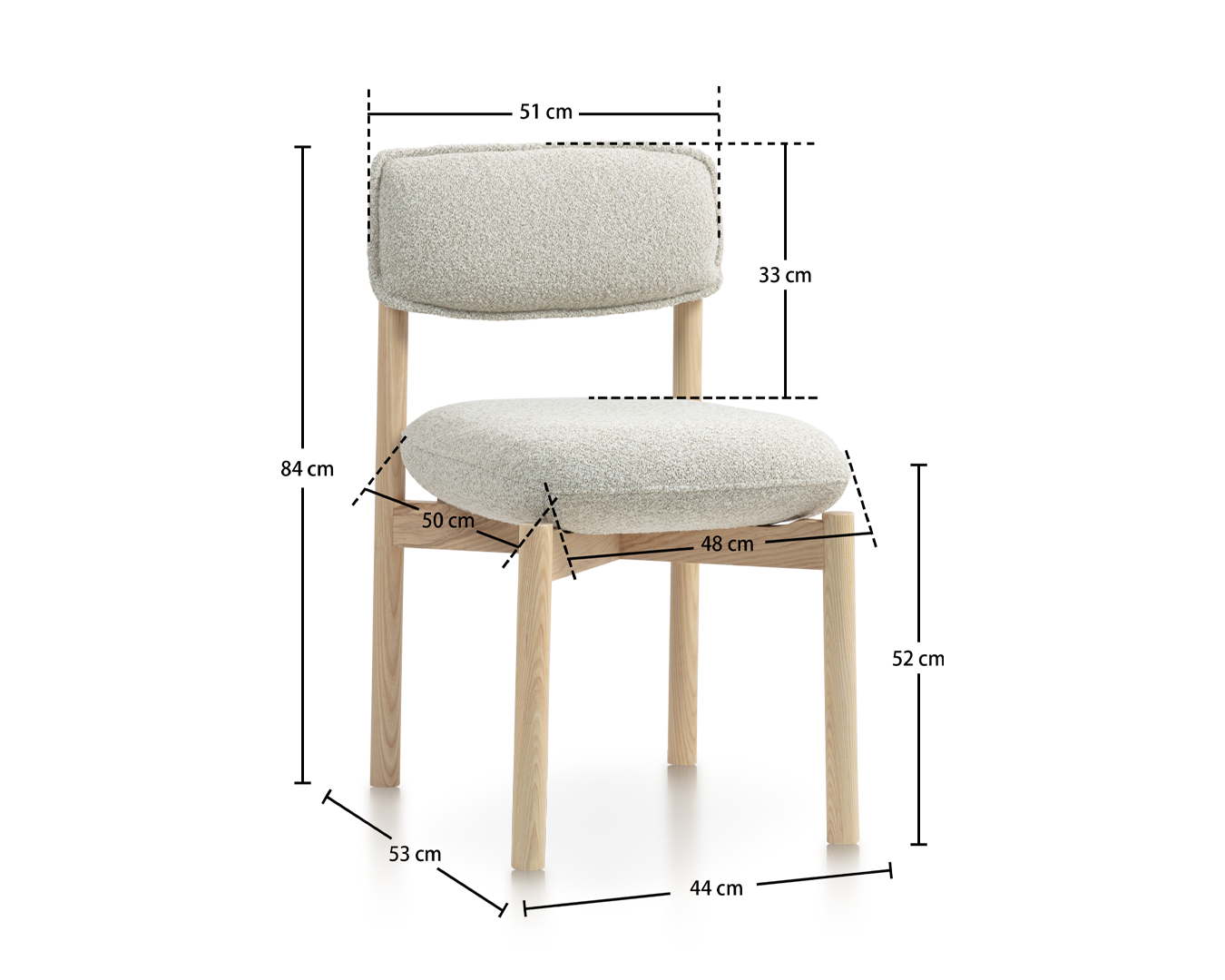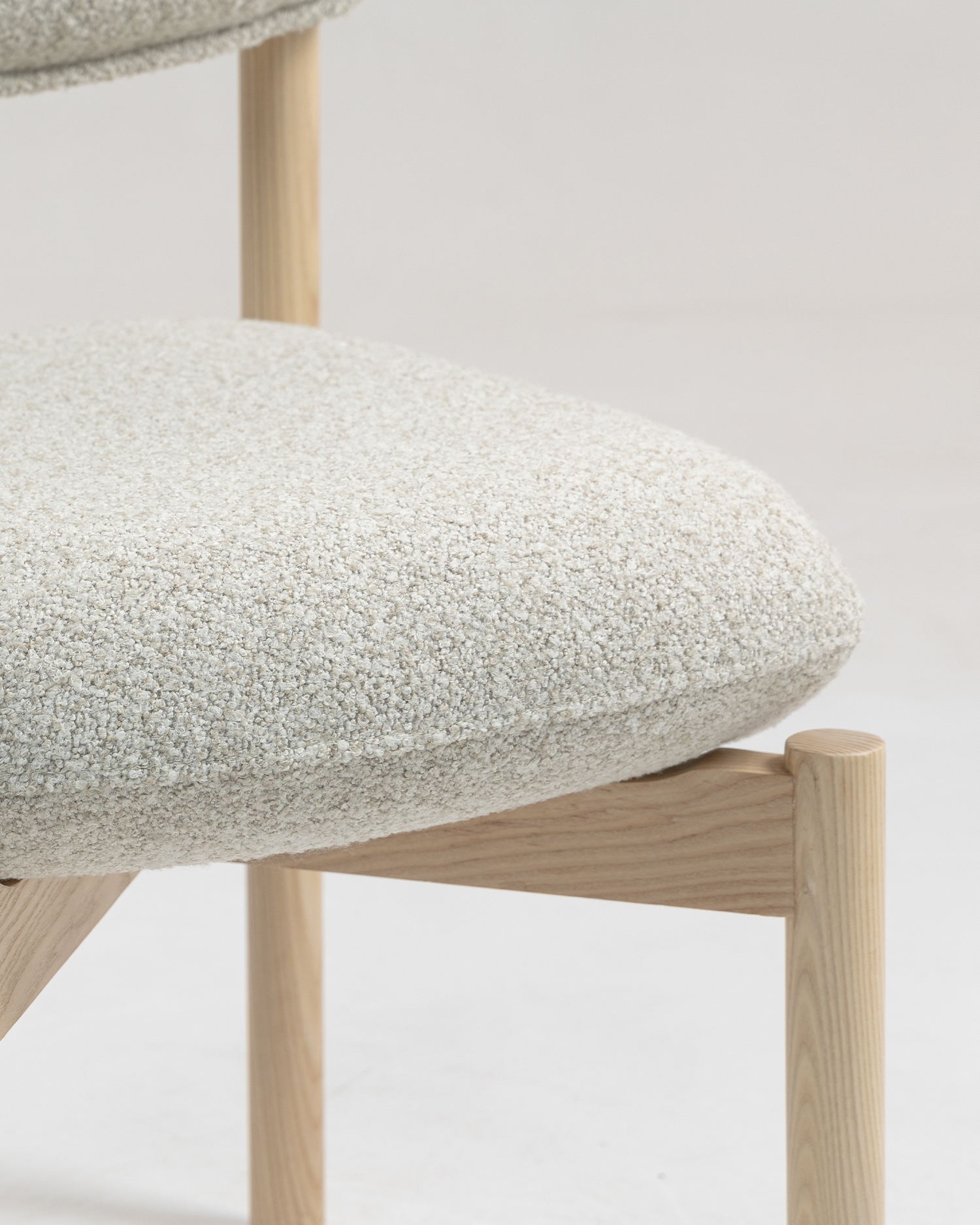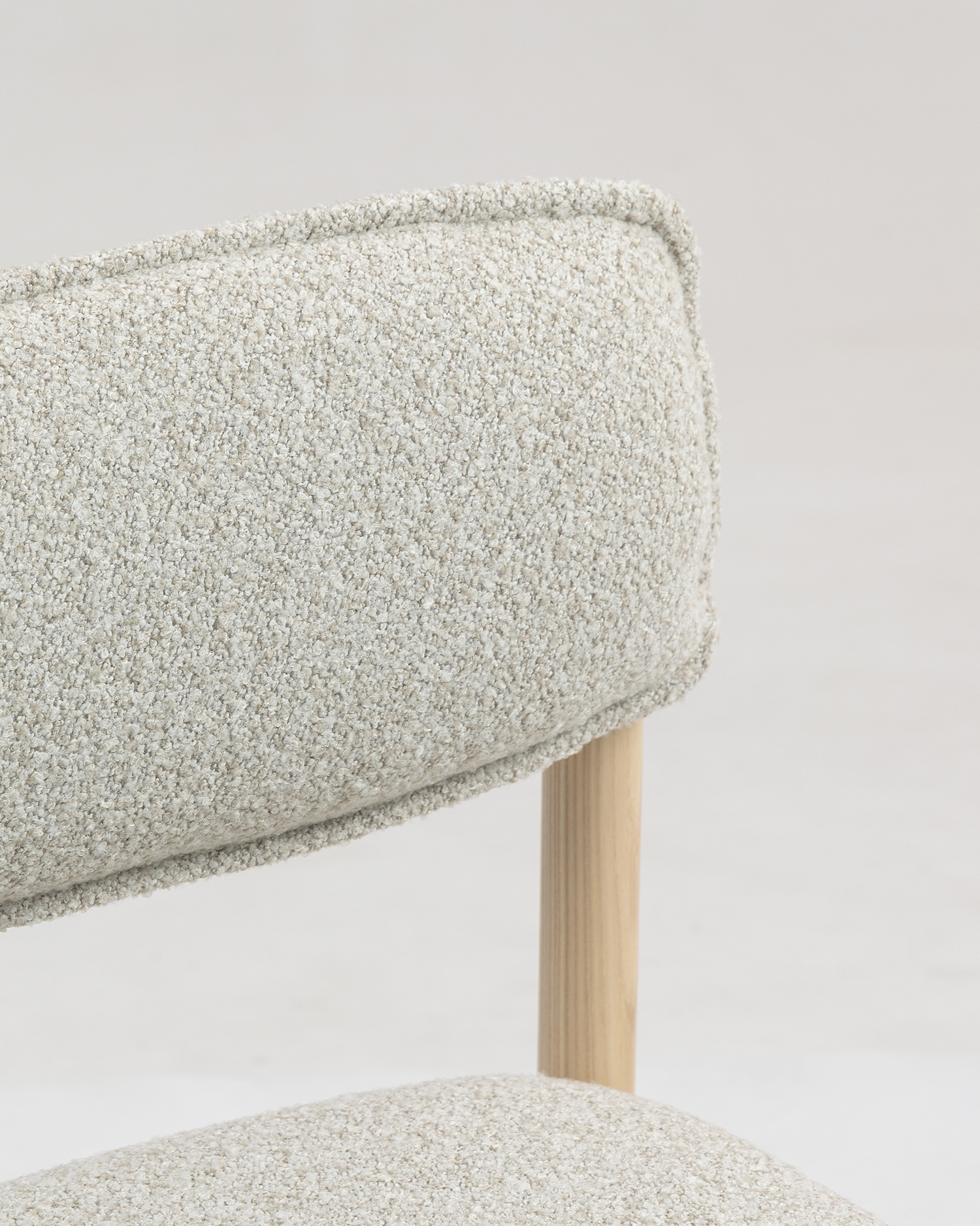 • Dibuat dari kayu abu berkualitas tinggi, hasil akhir berwarna terang menyoroti keindahan alami dan pola biji-bijian bahan, menambahkan sentuhan kehangatan dan keanggunan ke ruang apa pun. Kursi dan sandaran berlapis kain yang mewah dirancang untuk kenyamanan maksimal, memastikan bahwa Anda dapat bersantai dengan gaya untuk waktu yang lama. Kain lembut dan bertekstur tidak hanya terasa mewah di kulit tetapi juga melengkapi desain minimalis kursi.